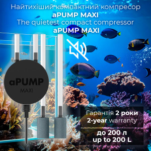Аквариумный компрессор aPUMP MAXI является на данный момент самым маленьким и бесшумным двухканальным компрессором в мире.