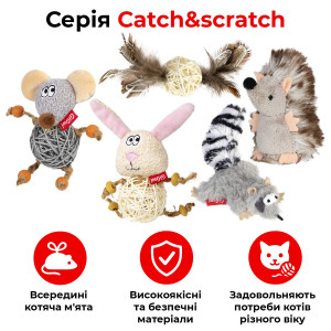 Серія Catch&scratch Серія класичних м'яких іграшок для котів. Містять котячу м'яту для стимулювання ігрового настрою. Іграшка для котів виготовлена зі штучного хутра, має приховану кишеню для пакетиків з котячої м'ятою...