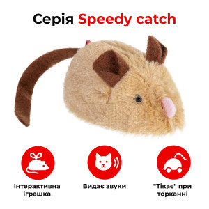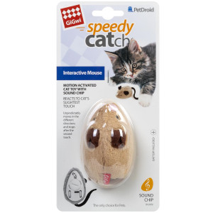 Іграшка для кішок виготовлена з пластику, текстилю та штучного хутра, зі звуковим чіпом. Мишка починає рух при дотику видаючи писк і змінює напрямок при зіткненні з перешкодами. При повторному дотику зупиняється. Дуже добре підходить для фізичного розвитку кошенят і підтримці м'язового тонусу у дорослих кішок і котів.