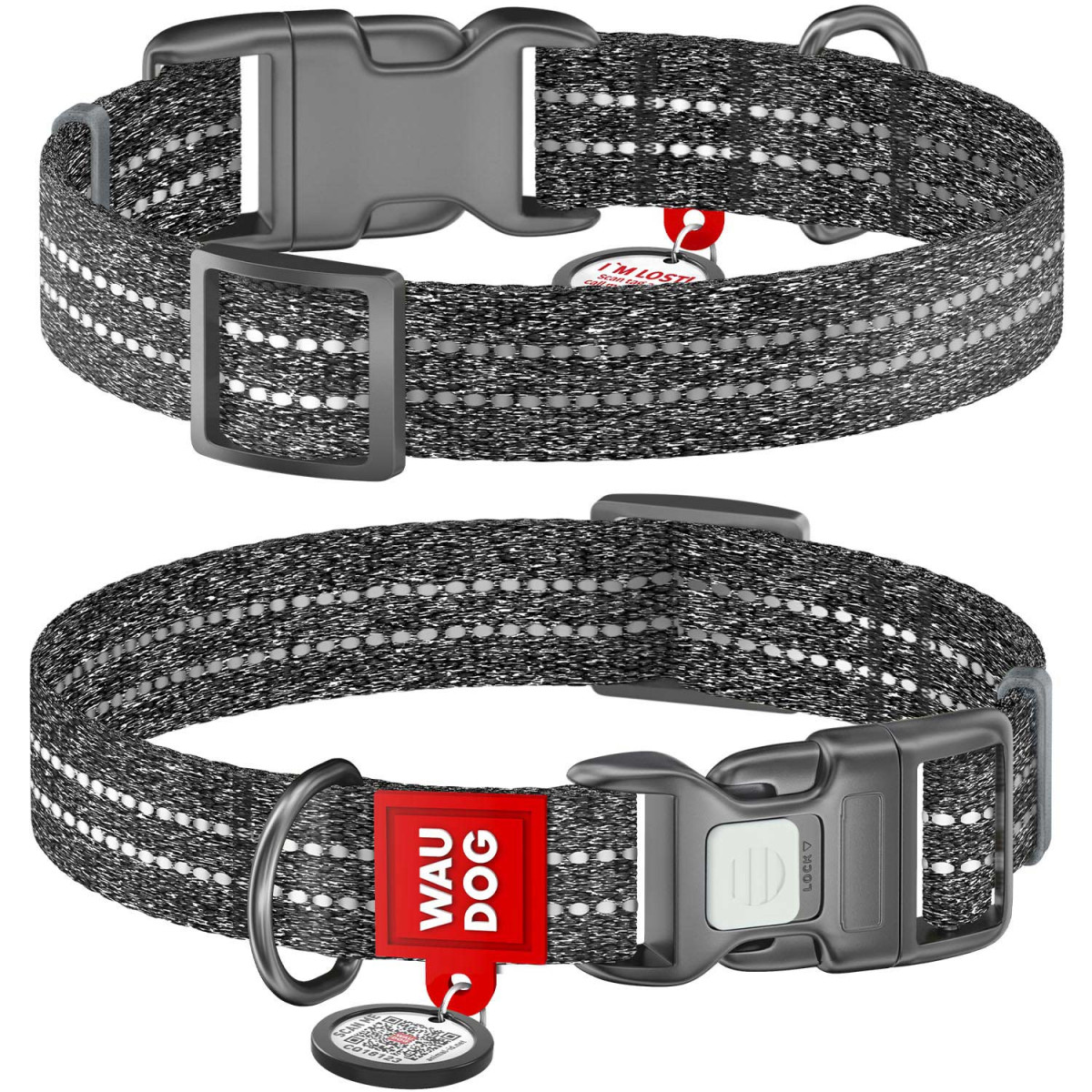 Отзывы о Ошейник для собак WAUDOG Re-cotton с QR паспортом, из восстановленного хлопка, пластиковая пряжка, серый