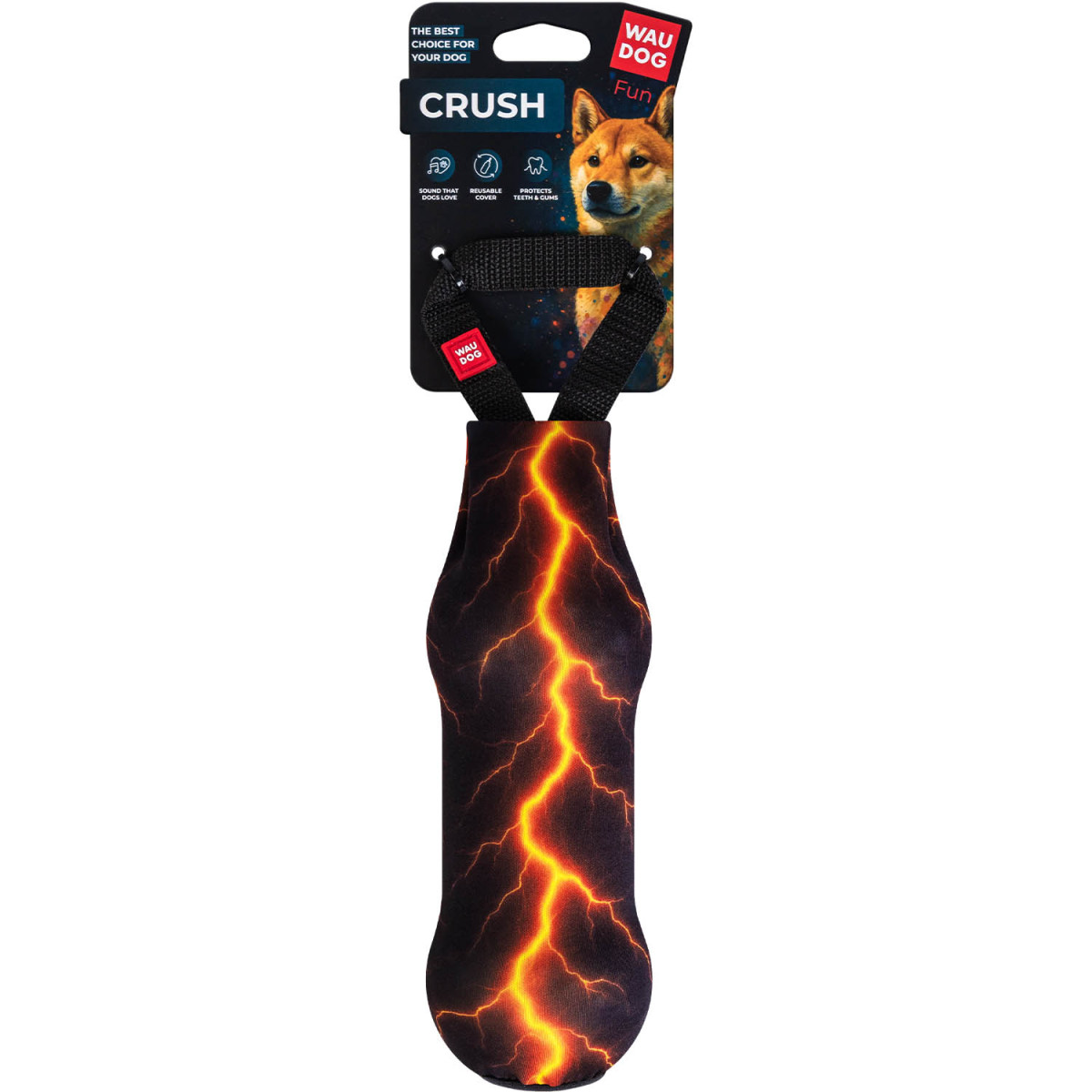 Отзывы о Игрушка для собак с пластиковой бутылкой и пищалкой WAUDOG Fun Crush, рисунок "Оранжевая молния"